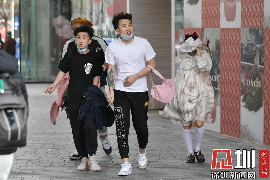 北京八九級大風進城,路人頭發(fā)被吹亂。