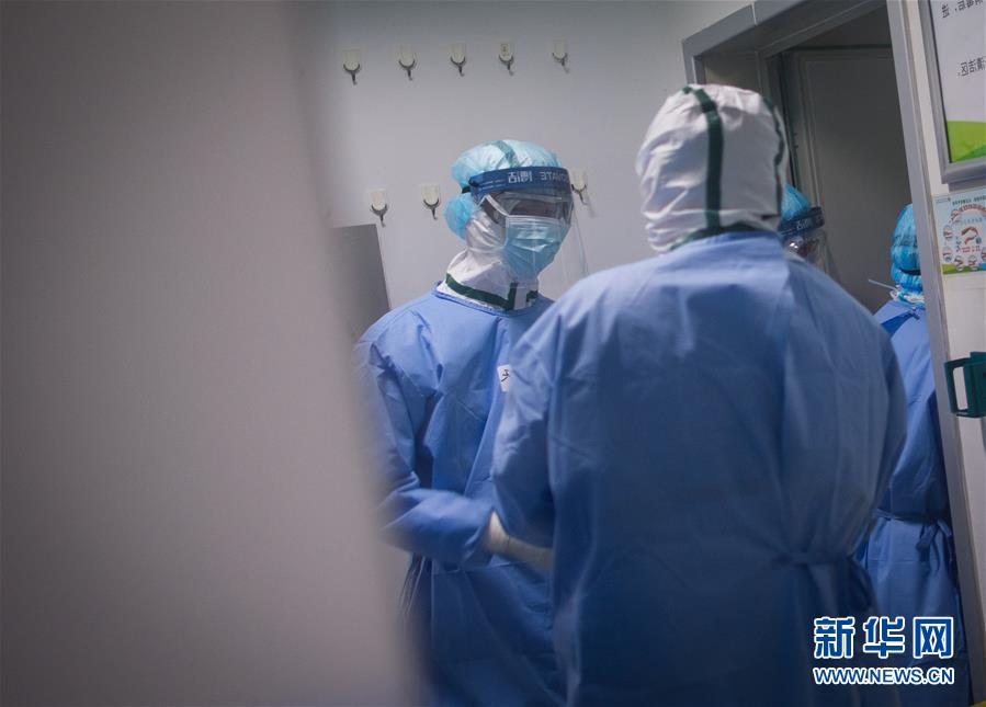 3月19日,在武漢市肺科醫(yī)院清潔區(qū),浙江醫(yī)療隊隊員在穿戴防護服。 新華社記者 肖藝九 攝