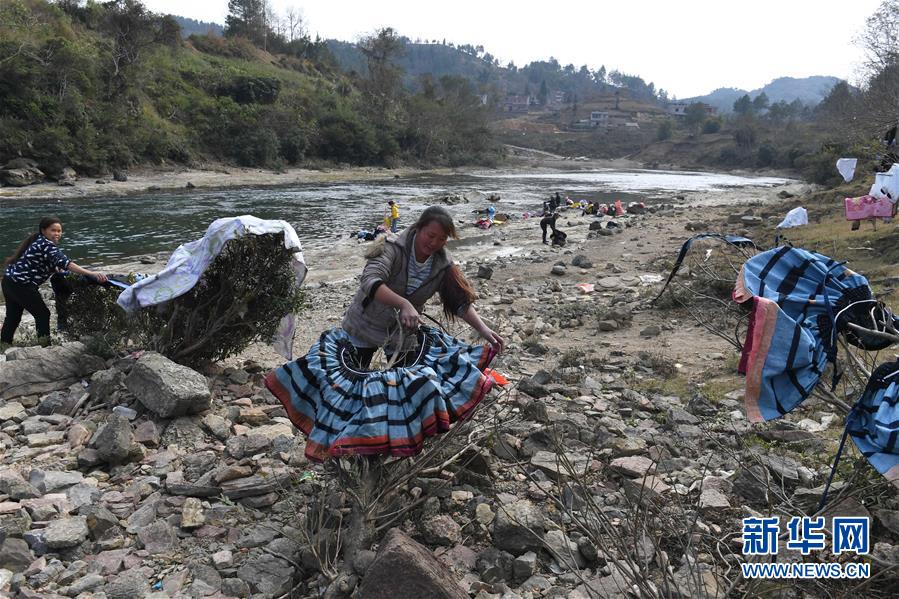 廣西南丹縣里湖瑤族鄉(xiāng),村民在河邊洗衣并就地晾曬(2018年1月12日攝)。廣西有近一半貧困人口生活在石漠化地區(qū),涉及數(shù)十個(gè)縣區(qū)。這里也是廣西飲水保障程度最低的地區(qū),解決貧困人口飲水問(wèn)題是廣西脫貧攻堅(jiān)戰(zhàn)“硬仗中的硬仗”。“十三五”以來(lái),廣西加快實(shí)施農(nóng)村飲水安全鞏固提升工程。因地制宜,采取新建、擴(kuò)建及管網(wǎng)延伸等多種措施,補(bǔ)齊貧困地區(qū)水利薄弱短板,進(jìn)一步提升石漠化地區(qū)群眾飲水安全保障水平,助推脫貧攻堅(jiān)。新華社記者周華攝