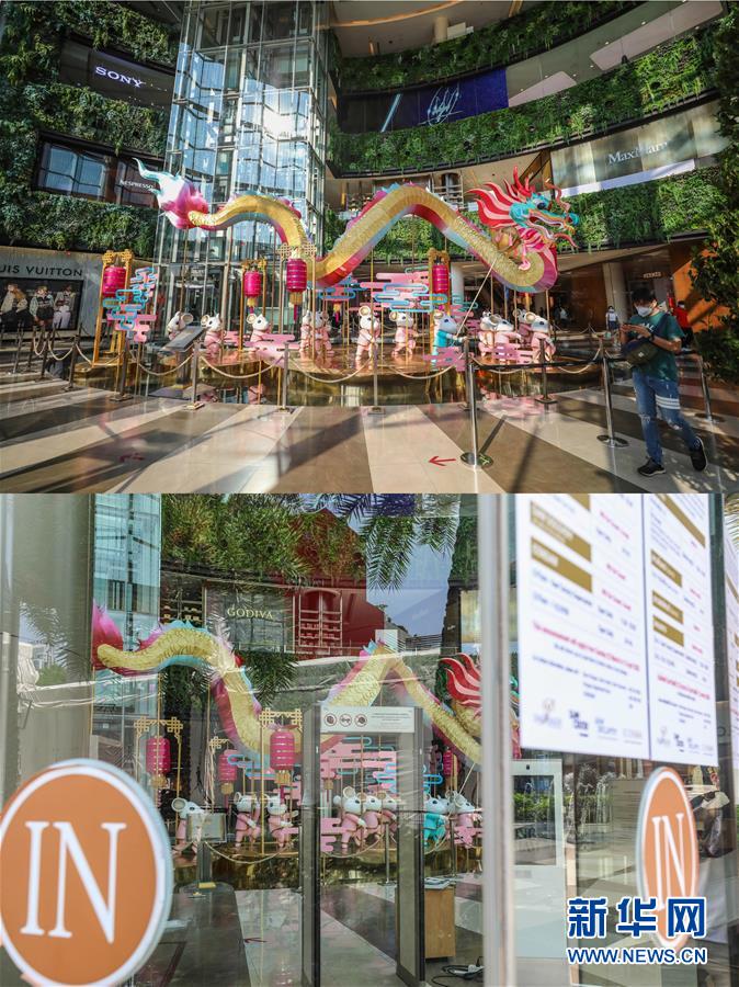 這是3月21日拍攝的泰國(guó)曼谷暹羅百麗宮商場(chǎng)(上圖)和3月22日拍攝的停止?fàn)I業(yè)的商場(chǎng)的對(duì)比圖。新華社記者張可任攝