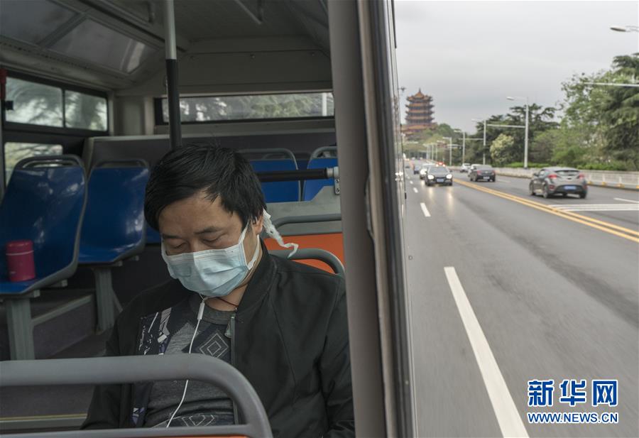 3月25日,61路公交車駛過黃鶴樓后進入武漢長江大橋。新華社記者費茂華攝