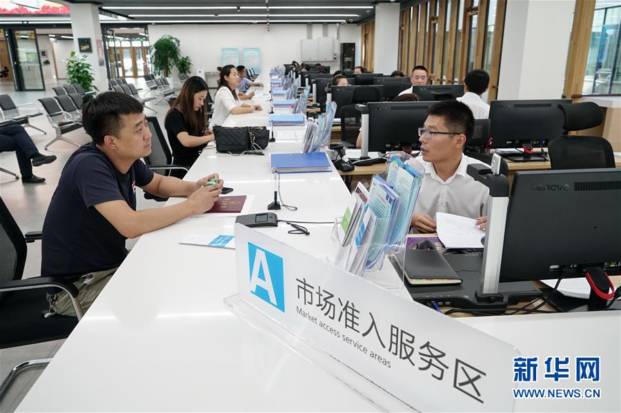 企業(yè)工作人員在雄安新區(qū)政務(wù)服務(wù)中心內(nèi)辦理業(yè)務(wù)(8月30日攝)。新華社記者牟宇攝