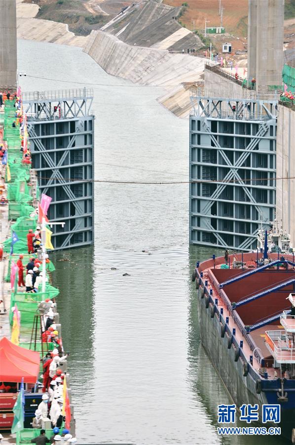 這是3月31日拍攝的正在打開的大藤峽水利樞紐工程船閘上閘首人字門。當(dāng)日,廣西大藤峽水利樞紐工程船閘試通航啟動,預(yù)計一年后可正式通航。新華社記者崔博文攝
