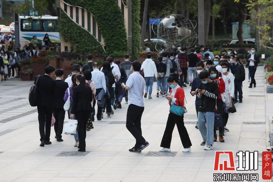 由于下班高峰客流量較大,“人龍”排到一旁的科技園文化廣場(chǎng),形成“蛇餅”隊(duì)伍,秩序卻十分井然。