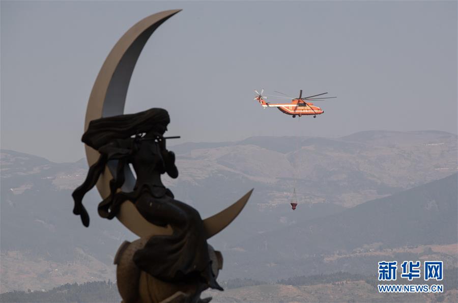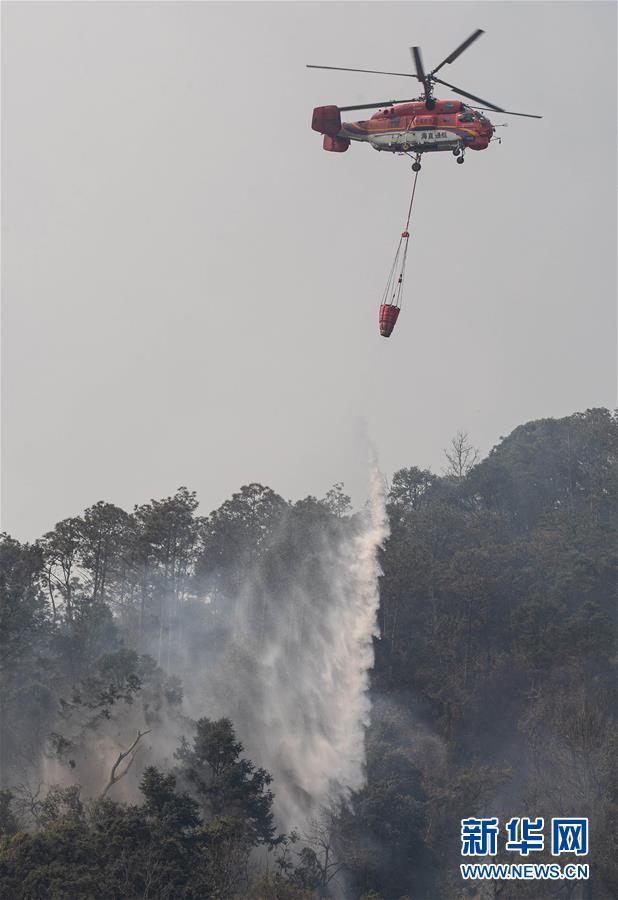 4月1日,一架米-26大型直升機(jī)在西昌森林火災(zāi)現(xiàn)場(chǎng)撲火。據(jù)悉,西昌森林火災(zāi)目前主要有三條火線,前方2800余名撲火隊(duì)員正分三線全力撲滅火災(zāi)。截至4月1日9時(shí),西昌市已疏散群眾24467人。新華社記者江宏景攝