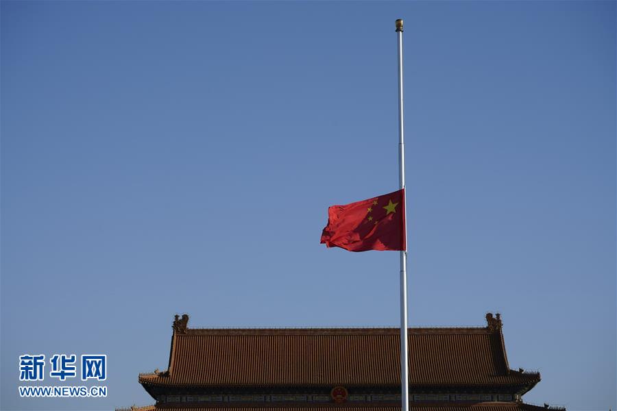 天安門廣場(chǎng)下半旗志哀