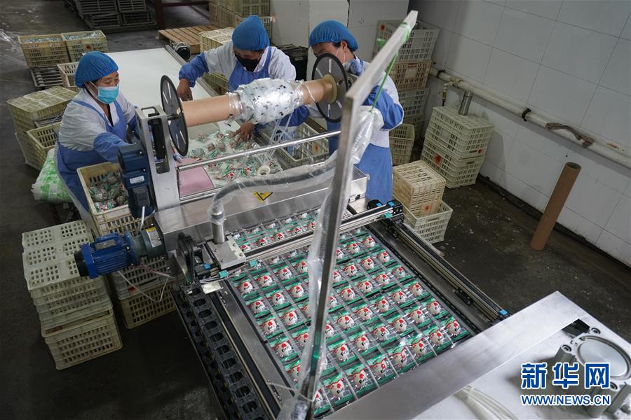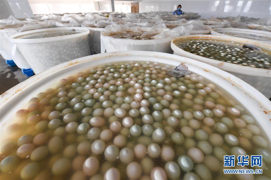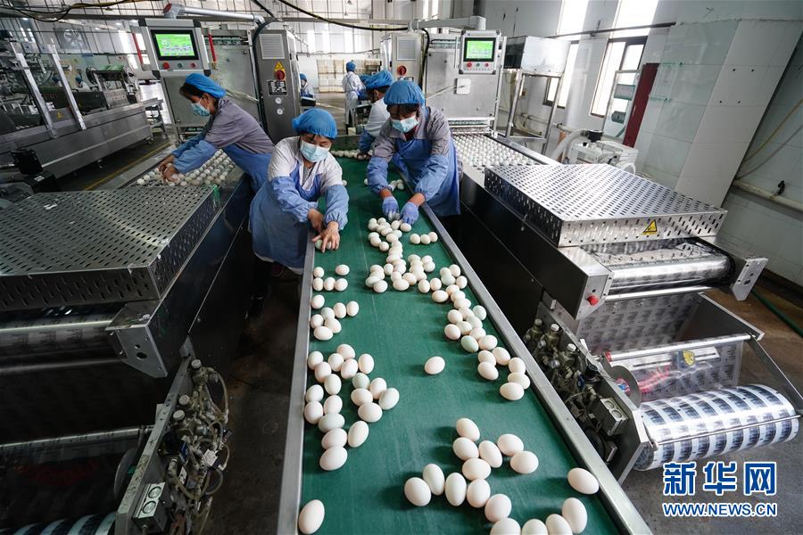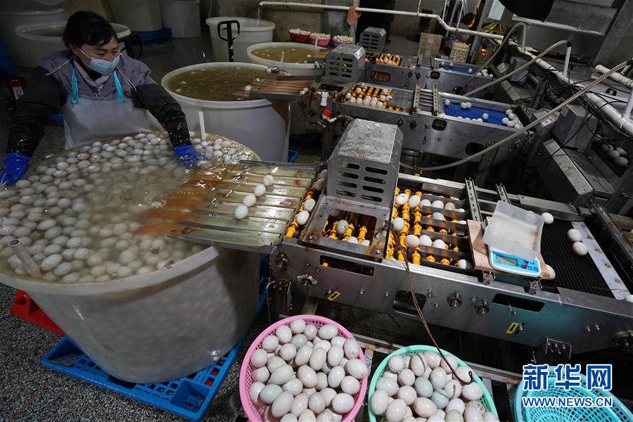 4月15日,在江蘇高郵鴨集團(tuán),工人在生產(chǎn)線上忙碌?!案哙]鴨蛋”是江蘇高郵的特色農(nóng)業(yè)名片。近年來(lái),當(dāng)?shù)卦诹挤N繁育、生態(tài)養(yǎng)殖、產(chǎn)品加工等方面加大力度,推動(dòng)高郵鴨蛋品牌化建設(shè),讓小鴨蛋成為帶動(dòng)農(nóng)戶致富的大產(chǎn)業(yè)。2019年,高郵市共計(jì)生產(chǎn)熟制鴨蛋產(chǎn)品近11.2億枚,年產(chǎn)值近17.68億元。新華社記者季春鵬攝