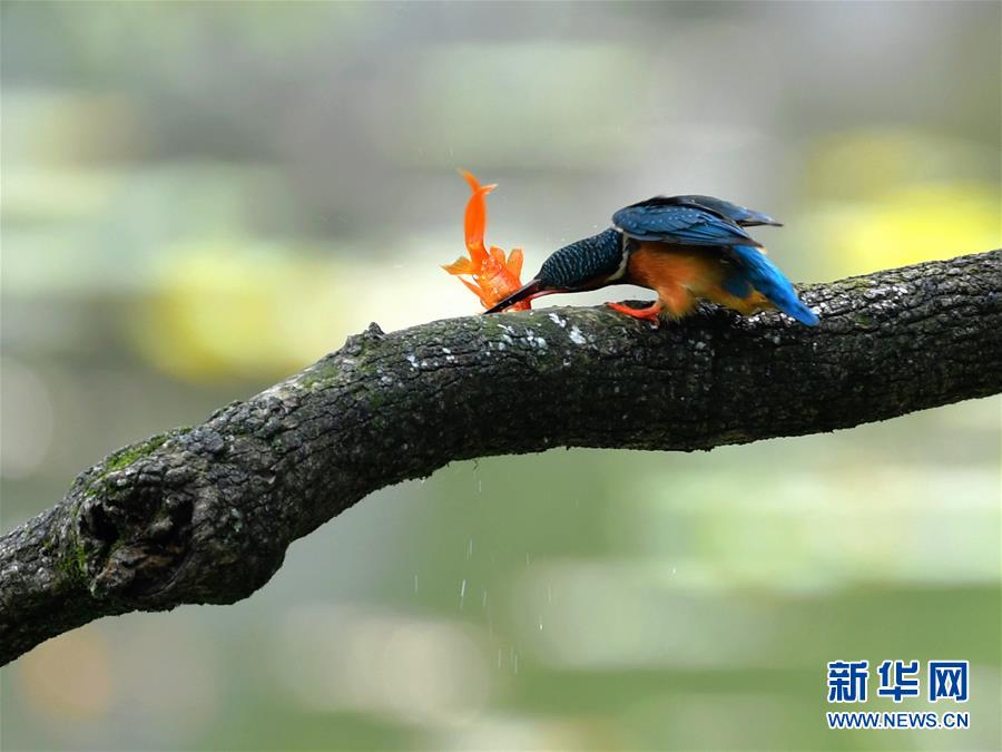 4月19日,在福州西湖公園,一只翠鳥捕到一條小魚。當(dāng)日是春季的最后一個(gè)節(jié)氣“谷雨”。此時(shí)節(jié),春天即將走到尾聲,萬物將展現(xiàn)出蓬勃生長的姿態(tài)。新華社記者魏培全攝