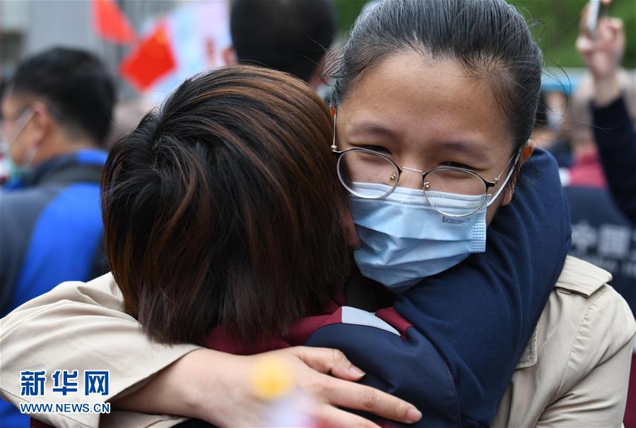 4月21日,在四川大學(xué)華西醫(yī)院,醫(yī)療隊(duì)隊(duì)員相互擁抱。當(dāng)日,來(lái)自四川大學(xué)華西醫(yī)院、華西第二醫(yī)院、華西第四醫(yī)院的醫(yī)療隊(duì)隊(duì)員解除隔離休整,與分別許久的家人、同事團(tuán)聚,緊緊相擁。新華社記者王曦?cái)z