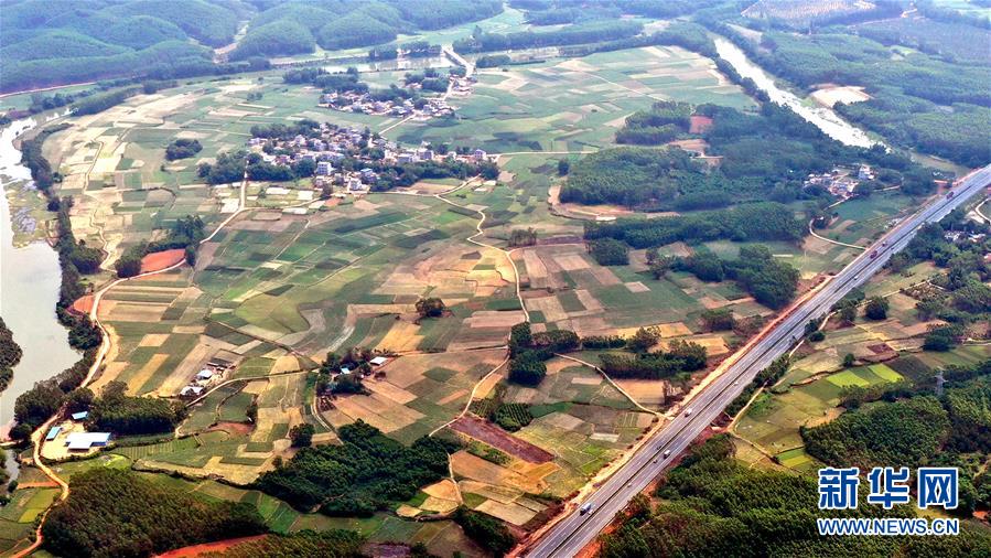 這是4月21日拍攝的合浦縣境內的桂海高速公路(無人機照片)。暮春時節(jié),從空中俯瞰廣西北海市合浦縣大地,河流、稻田、蝦塘、道路、村莊星羅棋布、色彩斑斕,美不勝收。新華社記者張愛林攝