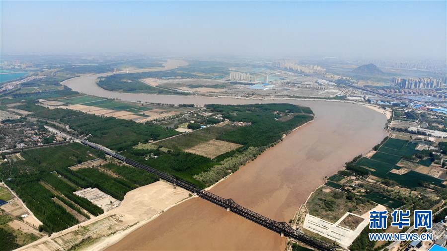 4月24日在山東濟(jì)南拍攝的黃河景色(無人機(jī)照片)。春暖花開的時(shí)節(jié),濟(jì)南黃河兩岸春風(fēng)送綠,大河、綠植與城市構(gòu)成了一幅春的畫卷。新華社記者王凱攝