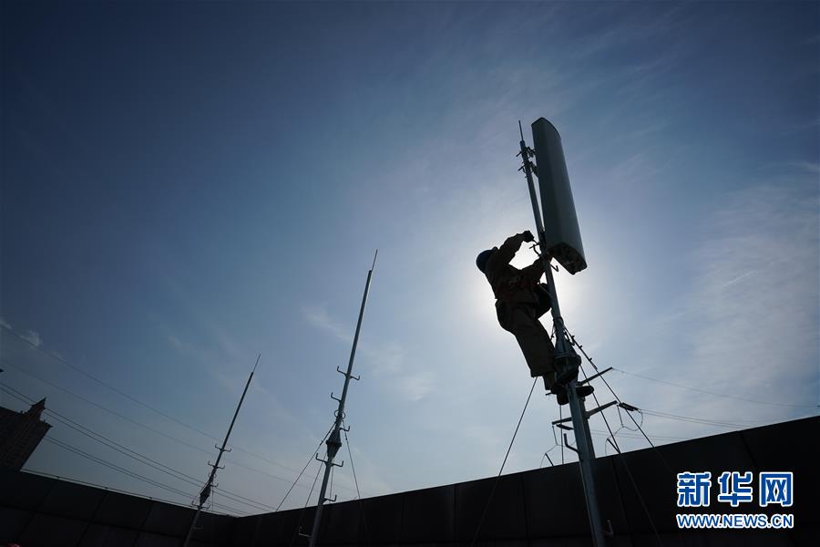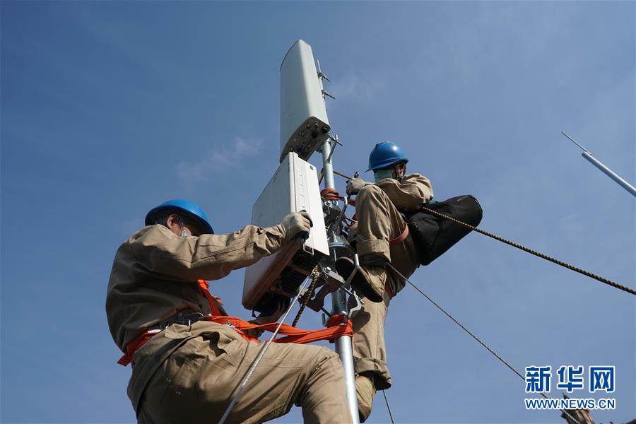 4月25日,在南京220千伏城南河變電站屋頂,工人在架設(shè)4G設(shè)備。當(dāng)日,三大通信運營商的2座5G、3座4G基站建設(shè)工作在南京220千伏城南河變電站屋頂有序展開。在變電站內(nèi)建設(shè)基站可有效利用電網(wǎng)資源,縮短建設(shè)周期,節(jié)約建設(shè)成本。新華社記者季春鵬攝