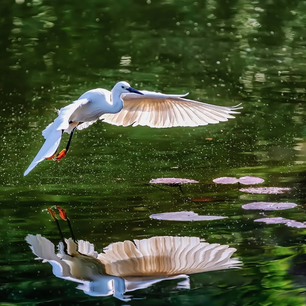 4月15日,攝于南山區(qū)華僑城天鵝堡附近。這是深圳拍鷺鳥的其中一個(gè)好去處。白鷺飛行時(shí)頭往回縮至肩背處,頸向下曲成袋狀,兩腳向后伸直,遠(yuǎn)遠(yuǎn)突出于尾后,兩翅緩慢地鼓動(dòng)飛翔。徐捷攝