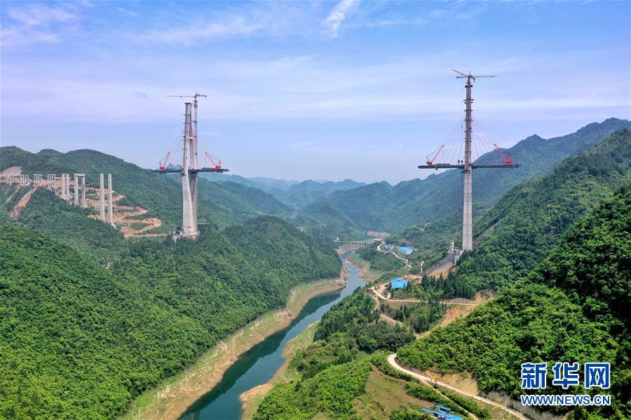 這是建設中的遵余高速湘江大橋(4月26日攝,無人機照片)。近日,由中鐵廣州局承建的貴州遵余高速湘江大橋工程在做好疫情防控的同時,全力恢復生產(chǎn)建設。目前工程進展順利,正在進行主橋鋼梁架設,預計將于8月底合龍。據(jù)了解,遵余高速湘江大橋橋梁全長1700余米,主跨560米。新華社記者劉續(xù)攝
