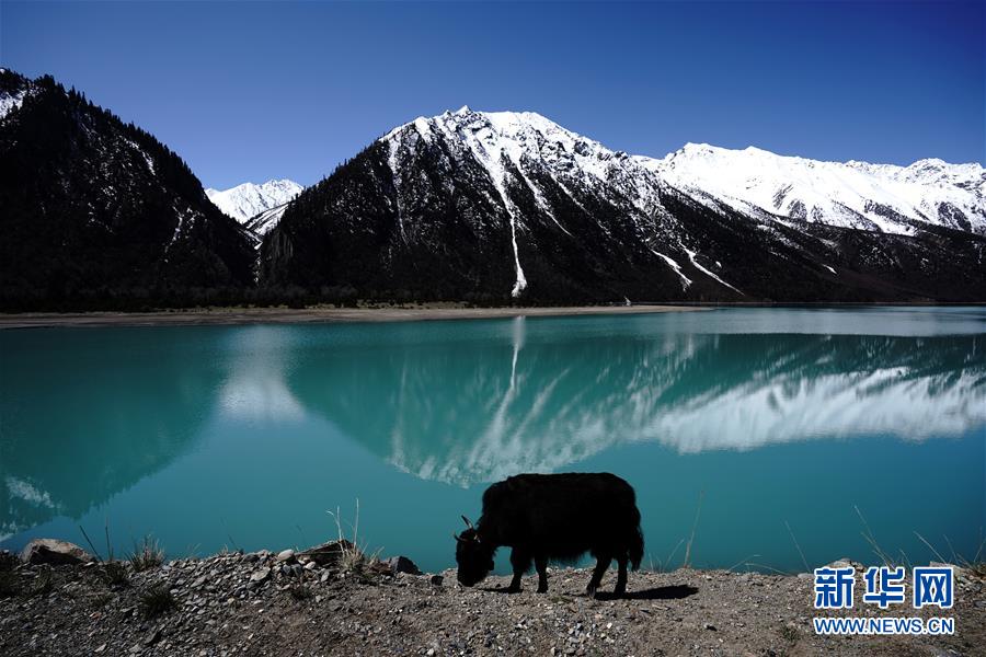 這是4月27日拍攝的然烏湖風(fēng)光。然烏湖位于西藏八宿縣境內(nèi),湖水與雪山、藍(lán)天相互映襯,景色如畫。新華社記者詹彥攝