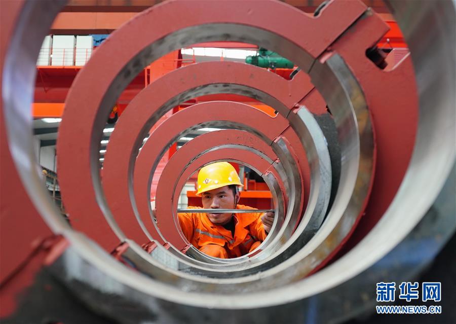 4月27日,工人在唐山市豐潤區(qū)一家起重設(shè)備制造企業(yè)生產(chǎn)車間工作。河北省唐山市豐潤區(qū)裝備制造業(yè)企業(yè)全面復(fù)工復(fù)產(chǎn)以來,各企業(yè)在做好疫情防控的同時,開足馬力加緊生產(chǎn),趕制訂單滿足需求,助推經(jīng)濟發(fā)展。新華社記者楊世堯攝