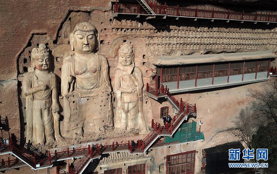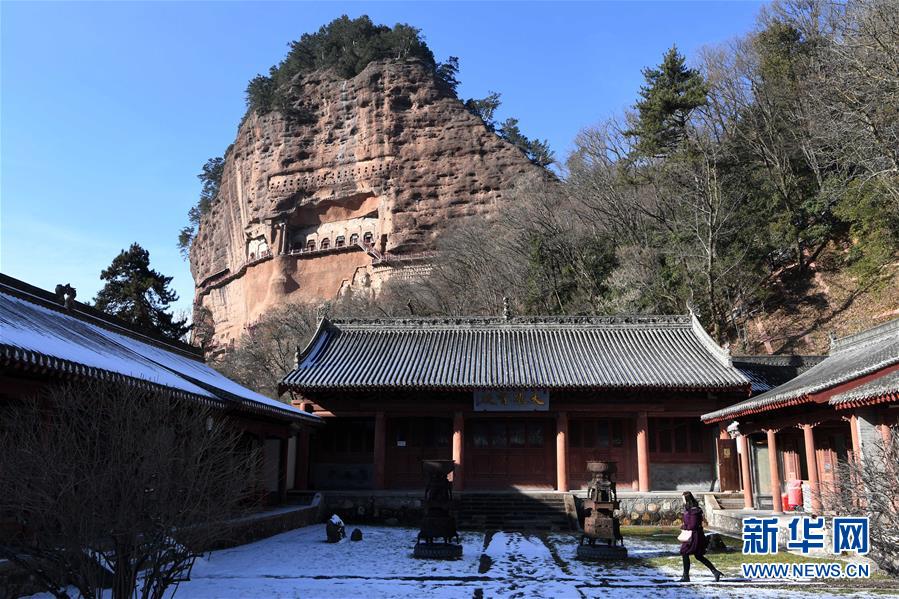 12月26日,游客在麥積山石窟參觀游覽。新華社記者馬寧攝