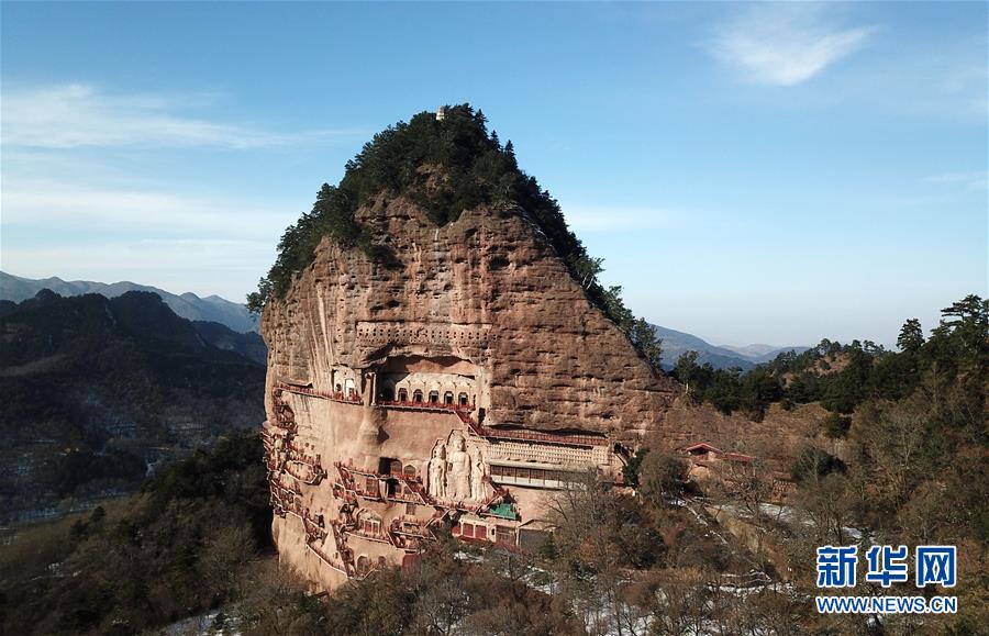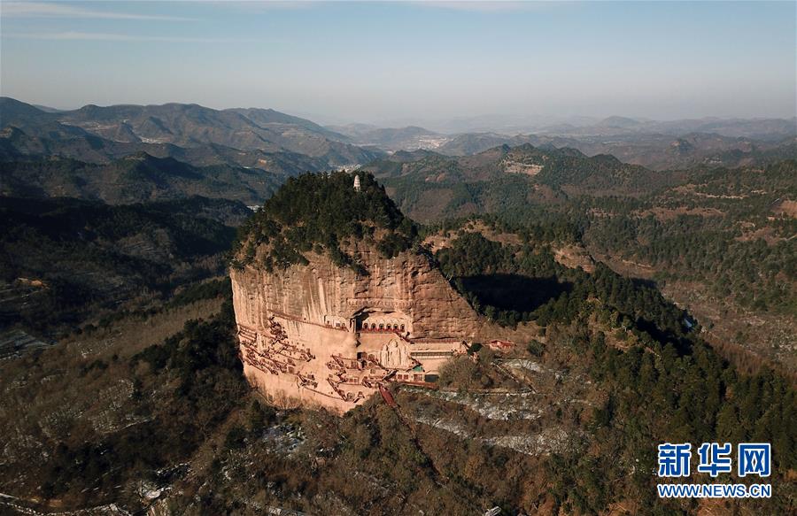 12月26日無人機拍攝的麥積山石窟。新華社記者馬寧攝