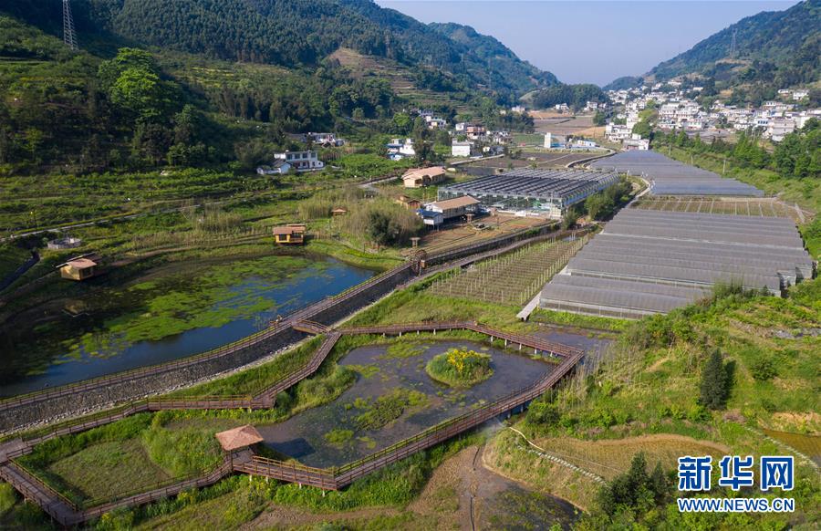 這是4月29日拍攝的四川珙縣三合村現(xiàn)代農(nóng)業(yè)產(chǎn)業(yè)示范園區(qū)及旅游休閑設(shè)施(無(wú)人機(jī)照片)。