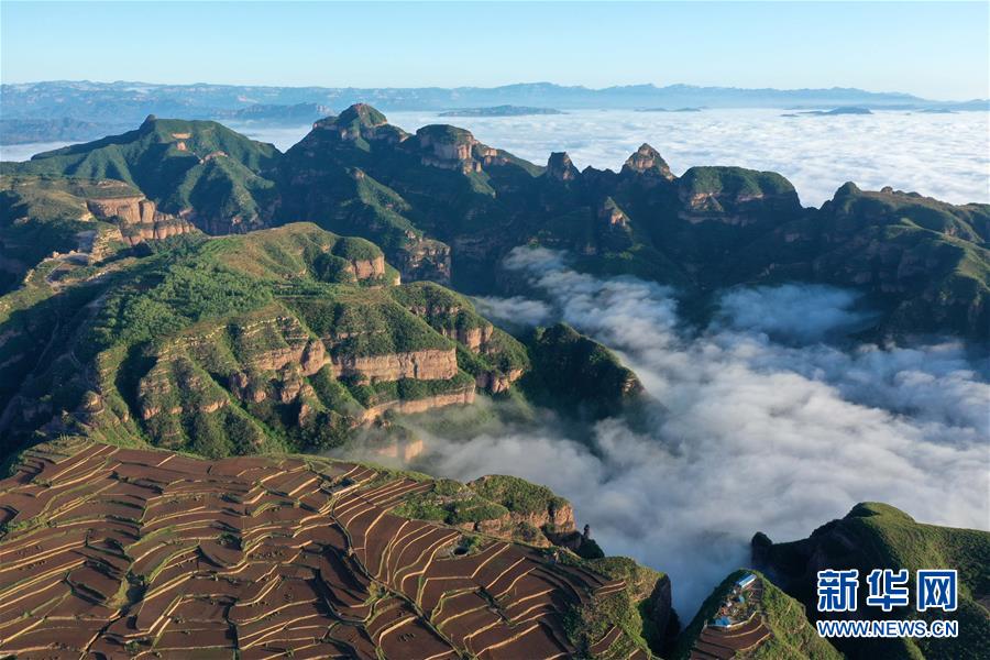 這是5月5日在河北省沙河市劉石崗鄉(xiāng)漸凹村拍攝的云海景觀(無人機(jī)照片)。5月5日,雨后的河北省沙河市劉石崗鄉(xiāng)漸凹村云霧飄渺,村莊、山巒、梯田在云海中若隱若現(xiàn),構(gòu)成一幅美麗畫卷。新華社記者牟宇攝