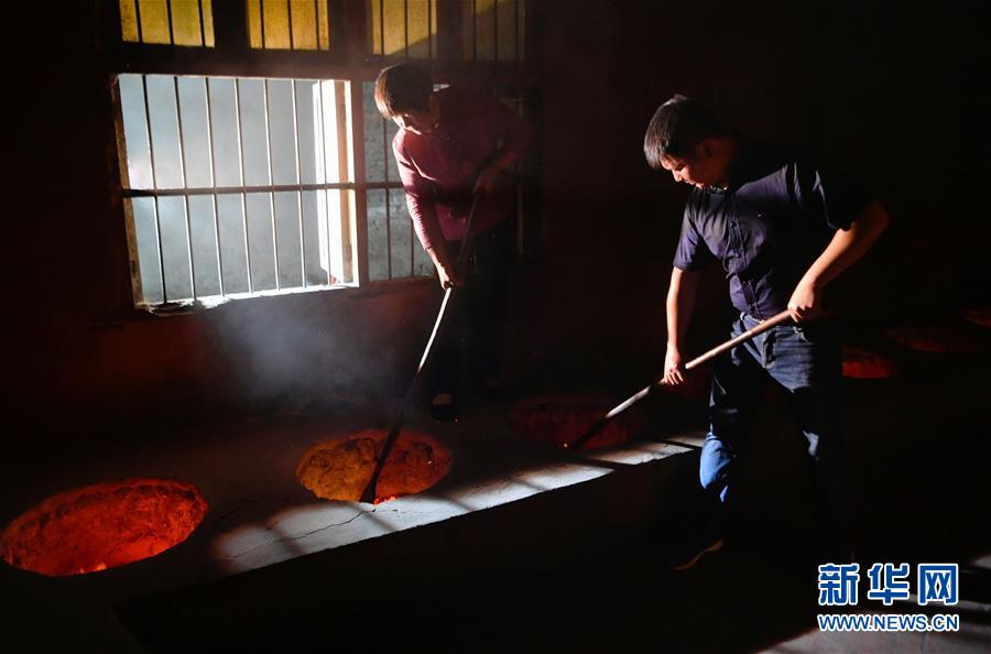 方舟(右)跟著母親游玉瓊學(xué)習(xí)巖茶的木炭烘焙法(5月10日攝)。