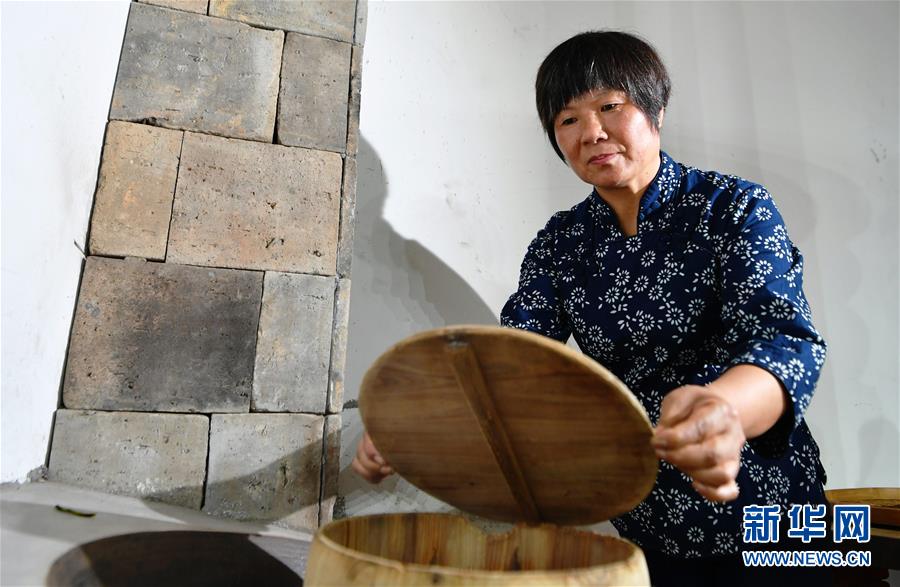 方舟在對新研發(fā)出的白雞冠茶用傳統(tǒng)綿紙進行緊壓包裝(5月10日攝)。新華社記者魏培全攝