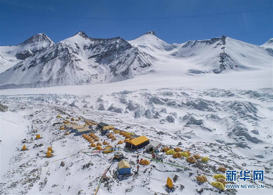這是海拔6500米的珠峰前進營地(5月10日無人機照片)。新華社記者孫非攝