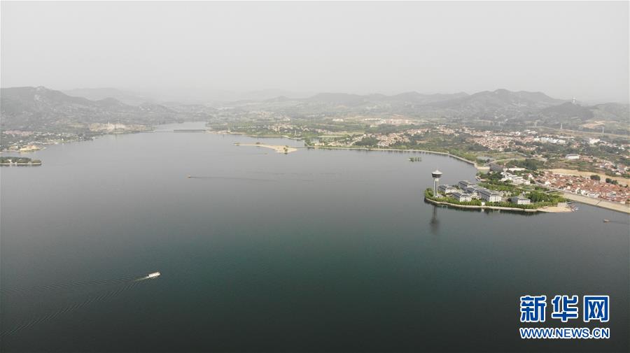 這是5月17日拍攝的雪野湖景色(無人機照片)。山東濟南風(fēng)景區(qū)——雪野湖波光粼粼,岸邊綠樹環(huán)抱,加上星星點點的帆船在湖面搖曳,景色宜人。新華社記者王凱攝