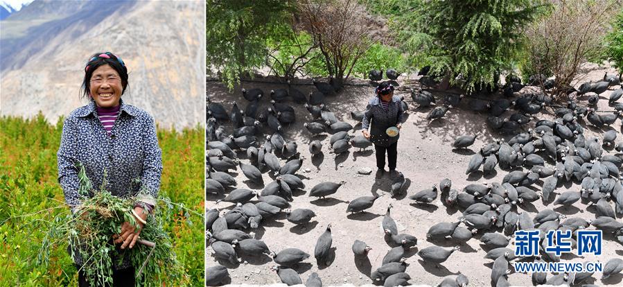拼版照片:左圖為西藏昌都市芒康縣納西民族鄉(xiāng)加達(dá)村村民白姆;右圖為白姆在芒康縣納西民族鄉(xiāng)三江農(nóng)民專業(yè)合作社喂雞。白姆在三江農(nóng)民專業(yè)合作社打工,主要負(fù)責(zé)喂雞和喂牛,每月有3000元的收入(5月4日攝)。新華社記者詹彥攝