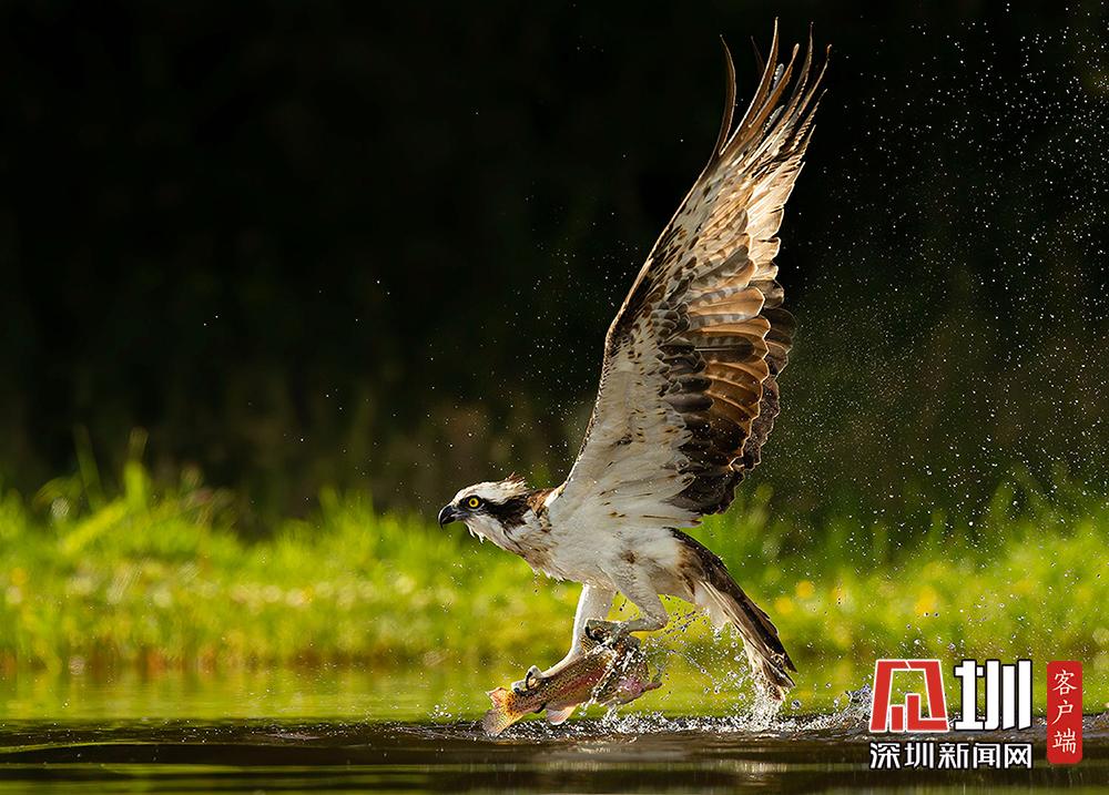 魚鷹俯沖入水捕魚 伺機而動“快準狠”