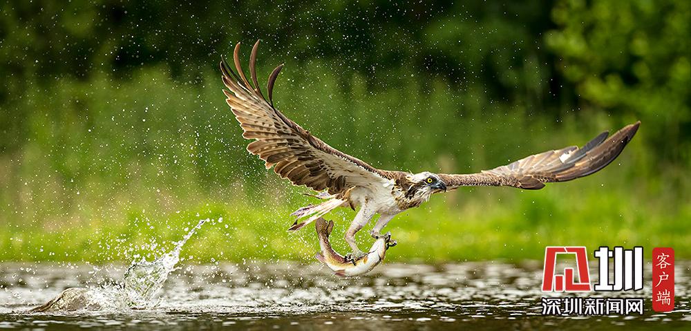 魚鷹俯沖入水捕魚 伺機(jī)而動“快準(zhǔn)狠”