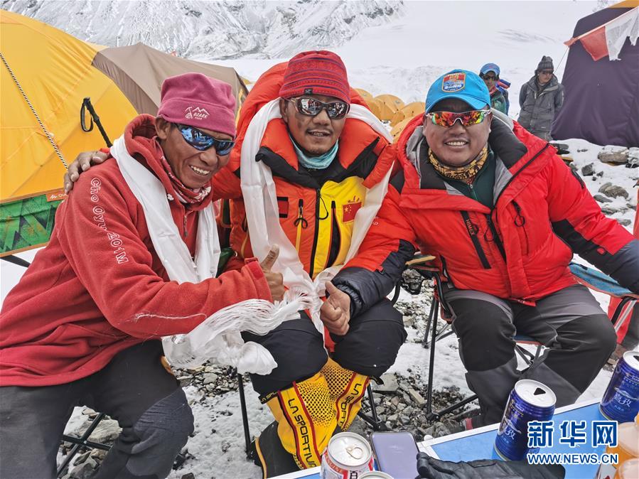 5月28日,測量登山隊(duì)員返回前進(jìn)營地后慶祝登頂。當(dāng)日,中國2020珠峰高程測量登山隊(duì)安全返回海拔6500米的前進(jìn)營地。5月27日,測量登山隊(duì)成功登頂珠穆朗瑪峰并完成峰頂測量等工作。新華社特約記者邊巴攝
