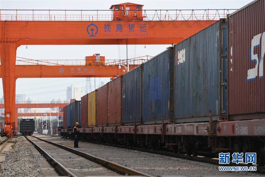 6月6日,合肥首開至荷蘭蒂爾堡的中歐班列(上)準(zhǔn)備從合肥北站物流基地駛出(無人機(jī)照片)。當(dāng)日,搭載82個標(biāo)準(zhǔn)集裝箱的中歐班列從中國鐵路上海局集團(tuán)有限公司合肥貨運(yùn)中心合肥北站物流基地駛出發(fā)往荷蘭蒂爾堡,標(biāo)志著合肥中歐班列通往荷蘭蒂爾堡的線路正式開通。新華社記者張端攝
