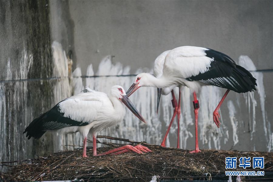 6月17日,三只東方白鸛從籠中飛出。新華社記者 周密 攝
