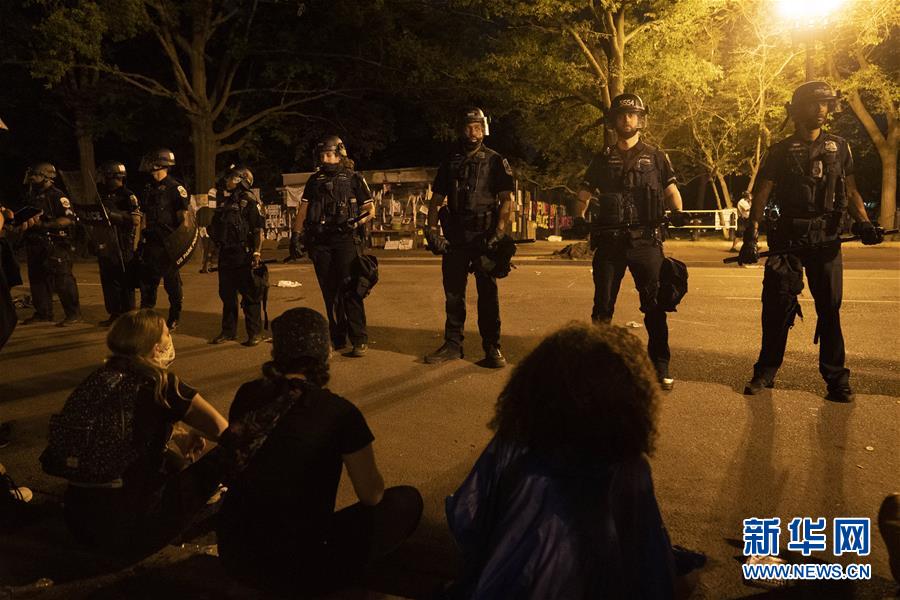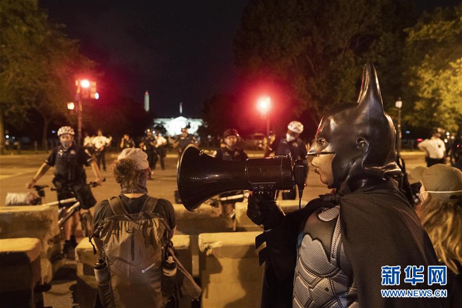 6月22日,警察和示威者在美國華盛頓白宮附近對峙。美國警察和示威者22日晚在首都華盛頓市白宮北側拉斐特廣場發(fā)生沖突并對峙。美國總統(tǒng)特朗普在社交媒體上說,許多人因破壞廣場上美國前總統(tǒng)安德魯·杰克遜的雕像及附近圣約翰圣公會教堂被逮捕。新華社記者劉杰攝