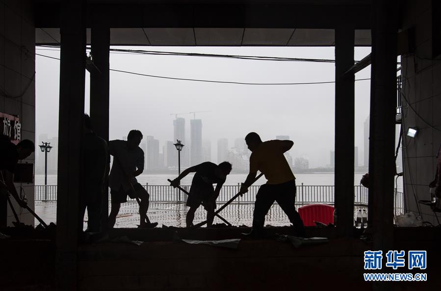 7月6日,工作人員在武漢龍王廟封堵閘口。記者6日從武漢市防汛抗旱指揮部辦公室獲悉,5日以來,武漢遭暴雨襲擊,全市多處路段漬水。至6日4時(shí),長江漢口站超設(shè)防水位1.79米,漢江新溝站超警戒水位0.01米。鑒于當(dāng)前水雨汛情和漬澇情況,武漢市從6日5時(shí)起,將排澇應(yīng)急響應(yīng)級(jí)別提升至Ⅱ級(jí);從6時(shí)30分起,將防汛應(yīng)急響應(yīng)級(jí)別提升至Ⅱ級(jí)。新華社記者肖藝九攝