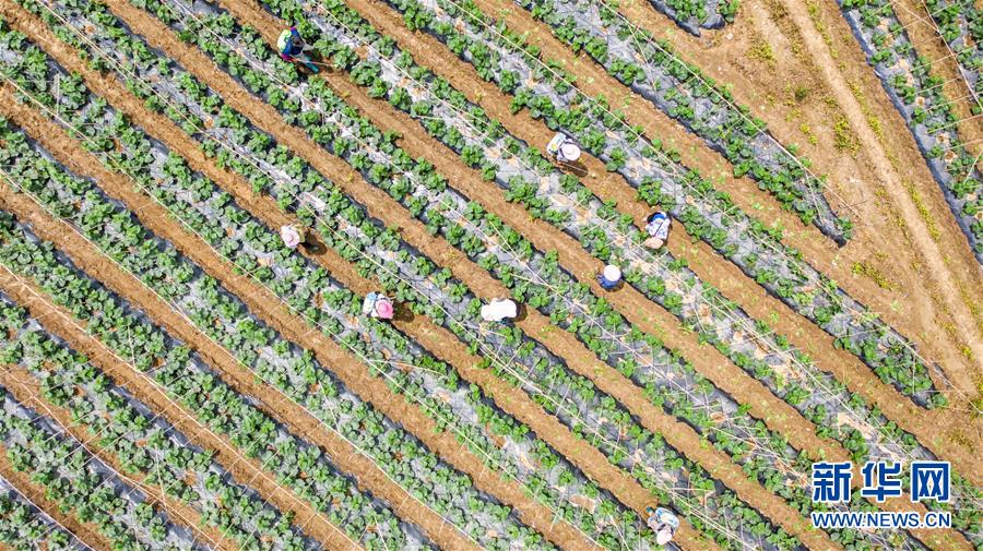 7月6日,貴州省六枝特區(qū)郎岱鎮(zhèn)青龍村村民在田地里勞作(無人機照片)。當日是小暑節(jié)氣,貴州省各地農(nóng)民不誤農(nóng)時,忙碌在田間地頭。新華社記者陶亮攝