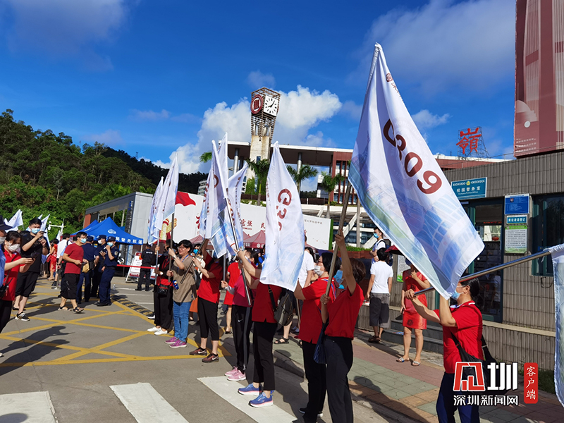 深圳紅嶺中學高三各班級家長代表組成的家長委員會,在門口為高三考生助威加油。