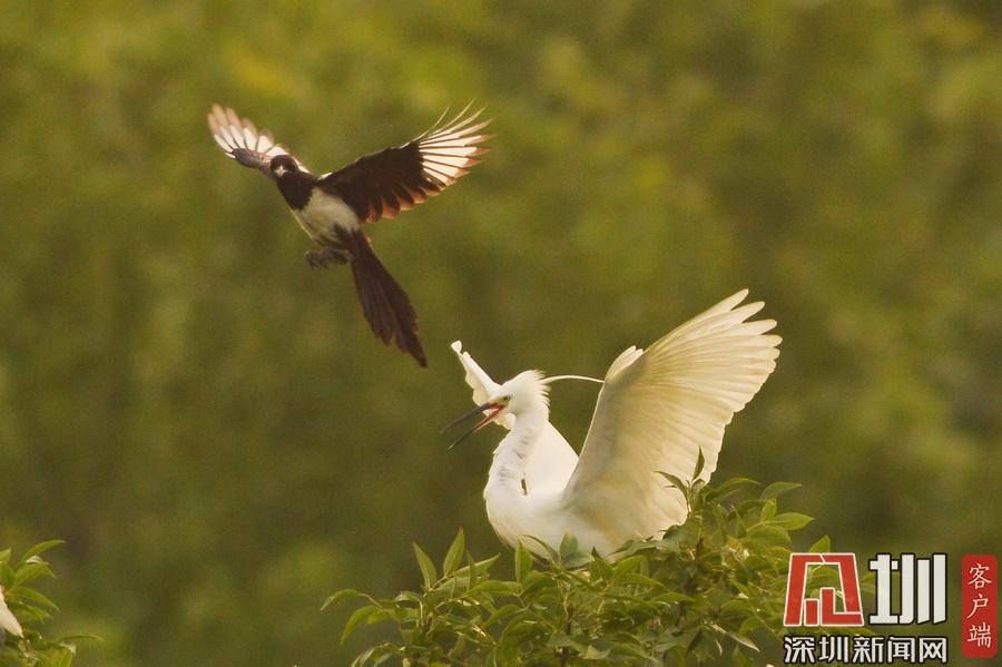 山東青島“鷺舞”林間 宛如一幅寫意山水畫