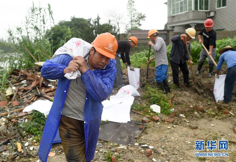 7月17日,防汛人員在秀洲區(qū)新塍鎮(zhèn)小金港村的河道邊加高堤防。浙江省嘉興市秀洲區(qū)處在杭嘉湖平原,受持續(xù)強(qiáng)降雨及上游排水影響,近期,秀洲區(qū)境內(nèi)的京杭大運(yùn)河分支航道持續(xù)保持較高水位。當(dāng)?shù)叵嚓P(guān)部門嚴(yán)陣以待,落實各項措施,確保安全度汛。新華社記者韓傳號攝