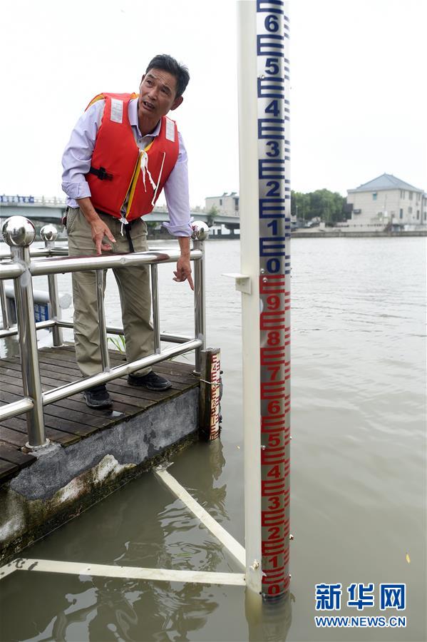 7月17日,王江涇水文站工作人員介紹京杭大運(yùn)河水位情況。浙江省嘉興市秀洲區(qū)處在杭嘉湖平原,受持續(xù)強(qiáng)降雨及上游排水影響,近期,秀洲區(qū)境內(nèi)的京杭大運(yùn)河分支航道持續(xù)保持較高水位。當(dāng)?shù)叵嚓P(guān)部門嚴(yán)陣以待,落實各項措施,確保安全度汛。新華社記者韓傳號攝