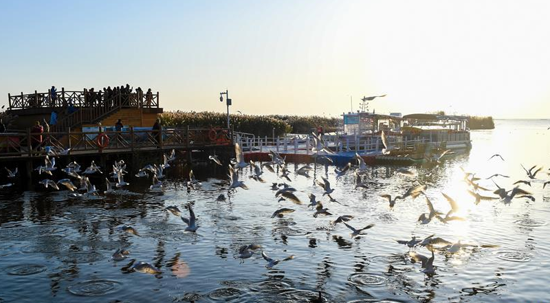 居延海位于內(nèi)蒙古阿拉善盟額濟(jì)納旗北部,是我國(guó)第二大內(nèi)陸河黑河的尾閭湖。其形狀狹長(zhǎng)彎曲,猶如新月,額濟(jì)納河匯入湖中。