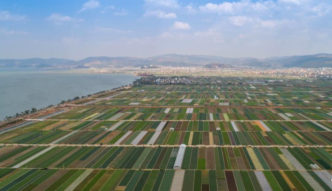 時下正值農忙時節(jié),云南省玉溪市通??h的農作物長勢喜人,秀美田園春色組成一幅色彩斑斕的畫卷。
