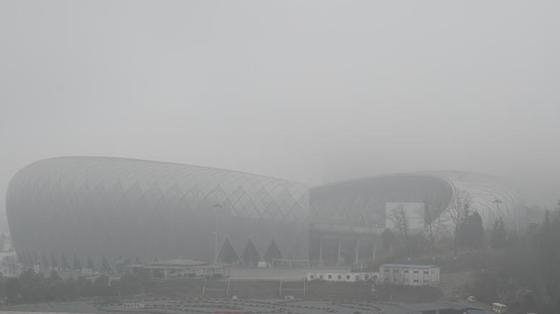 當(dāng)日,廣西南寧市遭遇大霧鎖城。彌漫的大霧讓遠處的建筑物若隱若現(xiàn),也讓不少出行的市民戴上了口罩。
