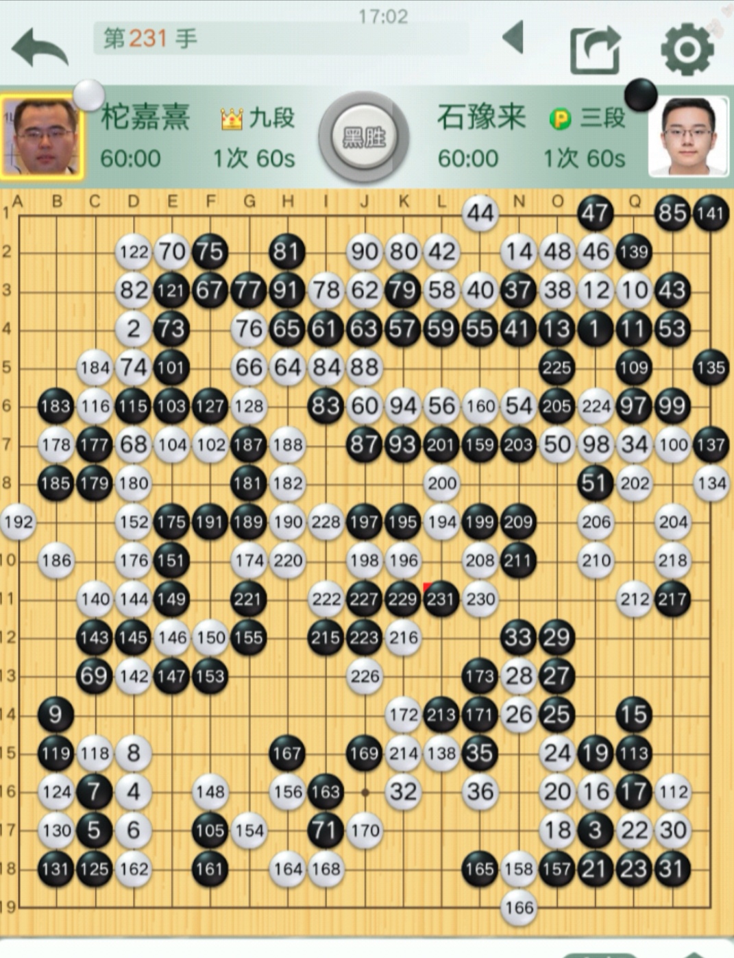石豫來爆冷戰(zhàn)勝柁嘉熹(對陣棋譜)