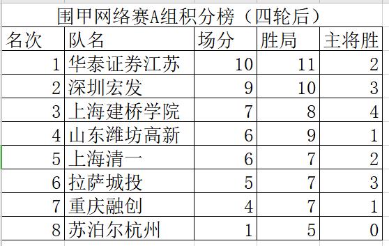 附1:2020年“華為手機(jī)杯”中國(guó)圍棋男子甲級(jí)隊(duì)聯(lián)賽網(wǎng)絡(luò)熱身賽AB兩組積分排名表
