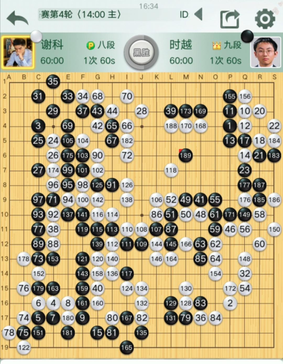 第二臺(tái)主將之戰(zhàn)謝科八段VS時(shí)越九段(對(duì)陣棋譜),時(shí)越最后勝出。時(shí)越首輪逆襲勝排名第二的楊鼎新九段,本輪再度逆襲得手,倒春寒味道十足。白棋耗費(fèi)心力經(jīng)營(yíng)中腹,但因黑棋在邊空所得更大,白棋大模樣作戰(zhàn)失敗。之后黑棋守牢己方大空,相機(jī)壓縮白棋中腹模樣,白棋實(shí)空“干不夠”,直至認(rèn)輸。