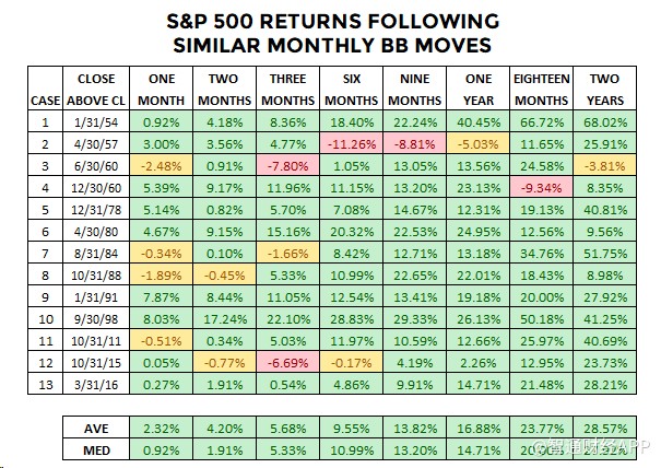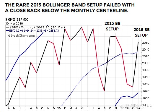 標普500指數(shù)從布林通道月線中軌以上跌至中軌以下,然后再反彈收高于中軌以上,并在此期間一直維持在下軌以上,這是標準普爾500指數(shù)相對少見的走勢,而這正是2018年至2019年發(fā)生的情況。