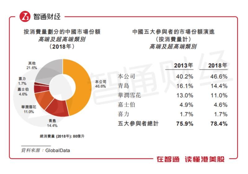 以中國市場為例,按銷量計(jì),2018年百威在中國啤酒市場的市占率為16.4%排名次于華潤雪花和青島啤酒(00168)位居第三位。但在高端及超高端啤酒領(lǐng)域,百威的份額達(dá)到46.6%,遙遙領(lǐng)先。