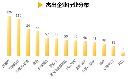房地產(chǎn)行業(yè)以126家企業(yè)位居第一,緊隨其后的是互聯(lián)網(wǎng)/IT和消費(fèi)品和零售行業(yè)。新一輪的房價上漲推動了房地產(chǎn)行業(yè)產(chǎn)品細(xì)分升級,HRBP、合伙人制度、多維度的人才招募等在房地產(chǎn)行業(yè)落地生根?;ヂ?lián)網(wǎng)/IT行業(yè)成為社會新的基礎(chǔ)設(shè)施,人才爭奪激烈,雇主在薪水上慷慨,在管理上有創(chuàng)意。消費(fèi)品和零售借著新零售的東風(fēng),以數(shù)據(jù)驅(qū)動、渠道革新,服務(wù)和產(chǎn)品重裝上陣帶來人才吸引和管理的新挑戰(zhàn)。